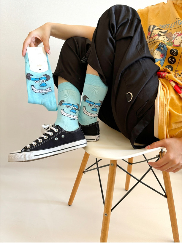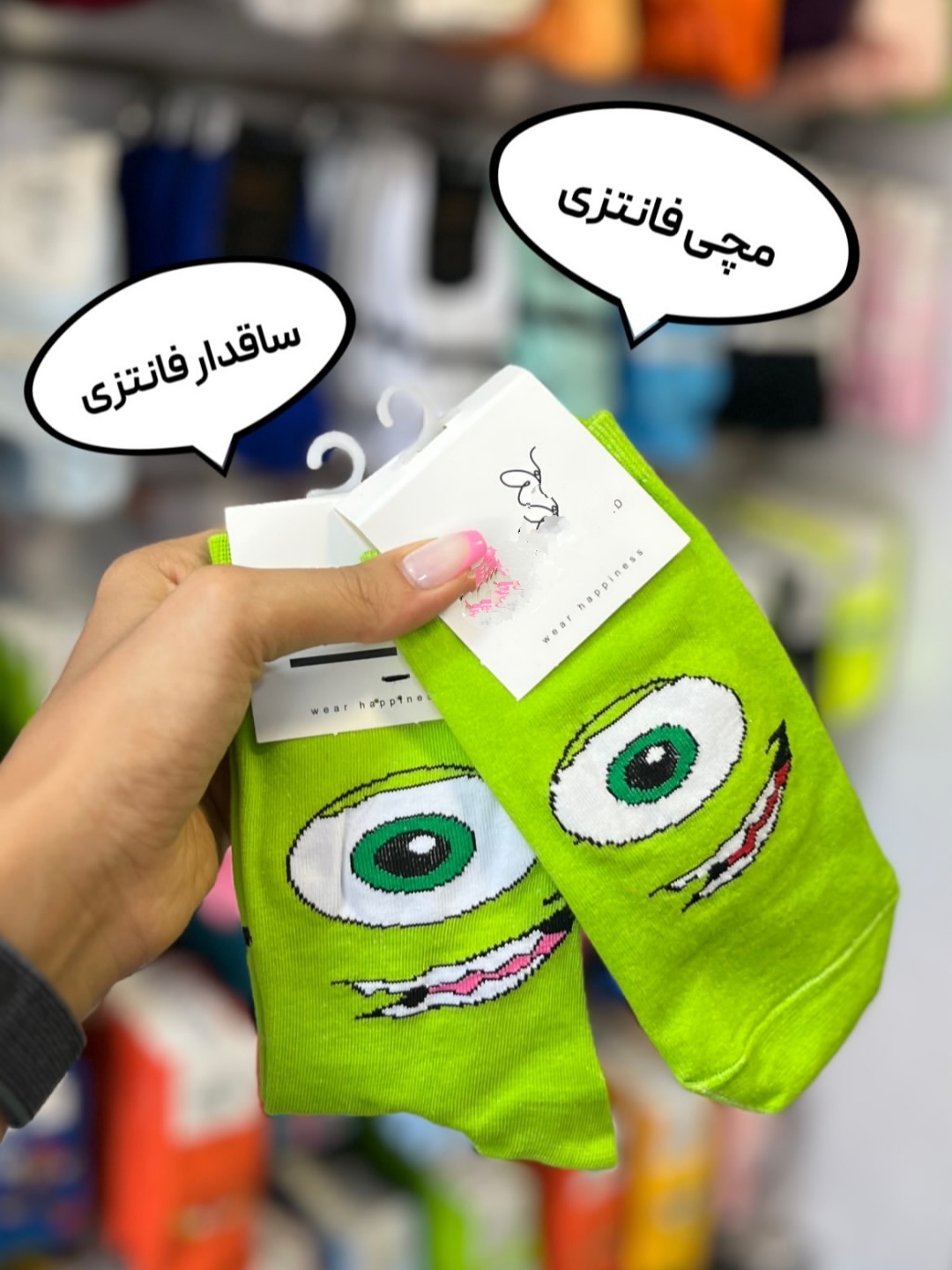 این جوراب فانتزی با طراحی دوستداشتنی شخصیتهای انیمیشن "هیولاها" (Sullivan، Boo و Mike) انتخابی خاص برای علاقهمندان به استایل متفاوت و رنگی است.